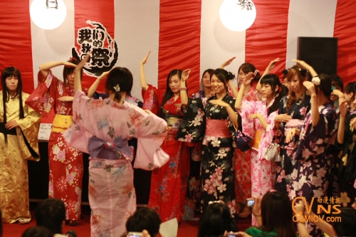 2008年10月11日,走进城隍庙一家餐厅顶楼,满目穿着和服的姑娘,以为来到了日本,其实,这是沪上一家名叫幸福合作社的社团模仿日本庙会举行的沪上“秋日祭”。