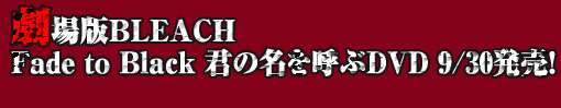 于2008年12月公开的BLEACH剧场版第3部《剧场版BLEACH Fade to Black 君の名を呼ぶ》(呼唤君之名)的DVD预定将于9月30日正式发售。本次也跟往常一样将发售限定版和通常版,其中《剧场版BLEACH Fade to Black 君の名を呼ぶ(完全生产限定版)[DVD]》将在本篇的基础上另外增加评论音轨作为收录特典收录在内,此外还有剧场版预告等特番的内容也将收录在其中。此外,还有故事向导书、剧场版角色的设定资料、草图等豪华的彩色画集一同赠送。