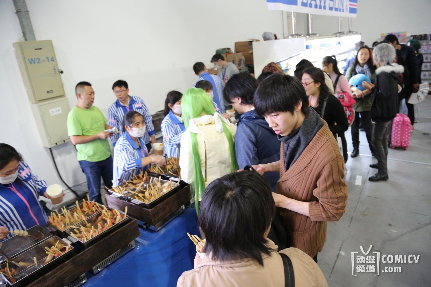 在后勤保障方面,罗森的入住让以往只能来点德克士的基友们有了更多的选择,我们注意了一下,在2楼展区的一角,罗森几乎建立了一个中小型的“围栏式”便利店,主要供应饮料、盒装寿司、关东煮、以及蒸包,价格方面感觉能够与外面的罗森门店持平,并没有大多数展会惯有的“抬价”。
