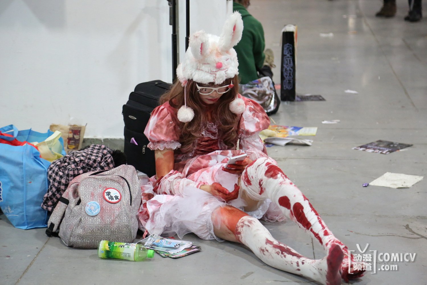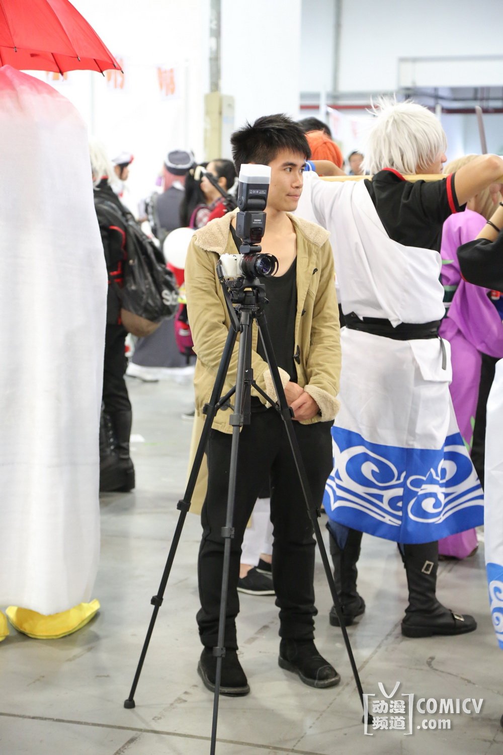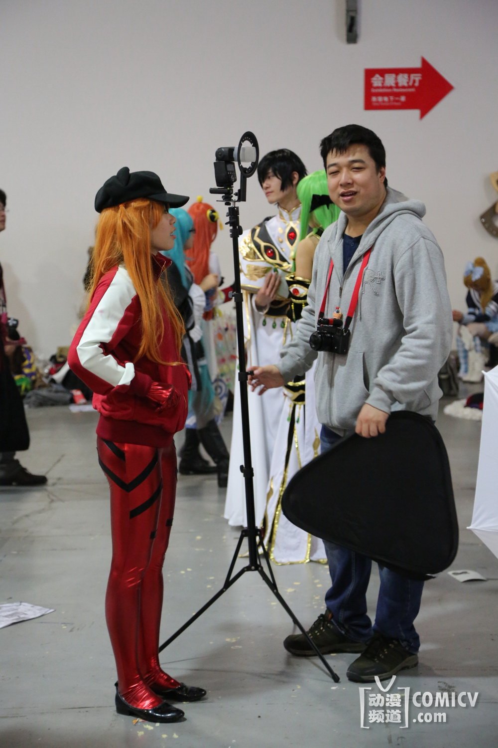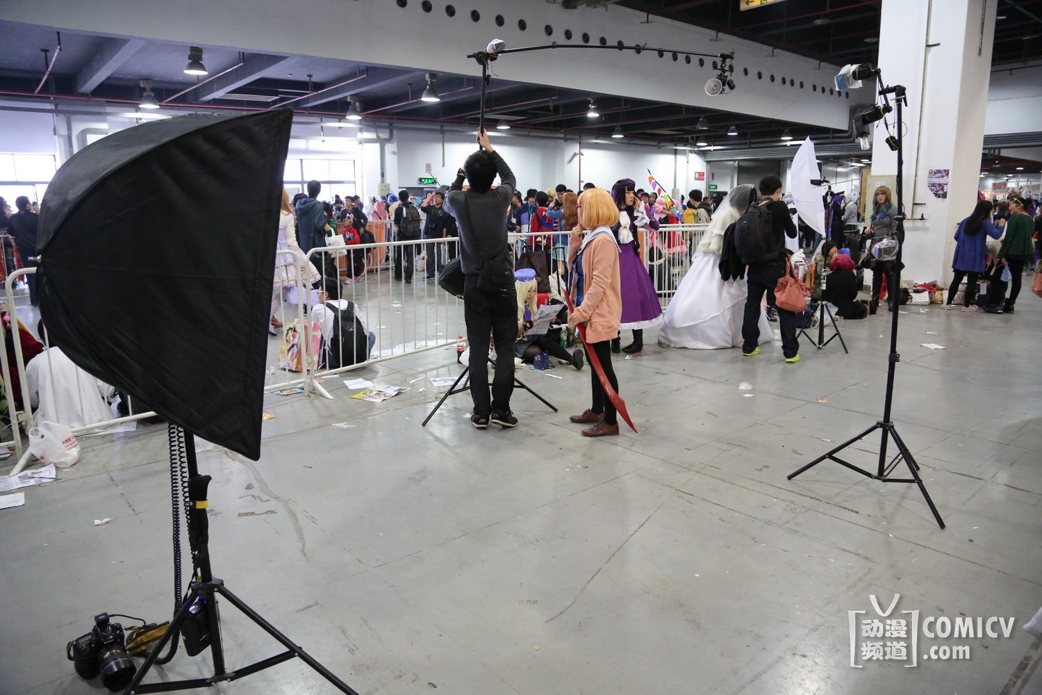 当然、也看到了一些新气象,比如以前只有极个别“反”会在角落里放一个两个柔光箱。这届趋势有所上身,特别是在栏杆内屯人的地方(实际此区域比较宽敞),出现不少人“占山为王”的态势,一个个“反”可以占据大约三四米的宽度,支起两个柔光箱,或者是拍摄熟人,又或者是招呼周围路过的COSER配合拍摄。