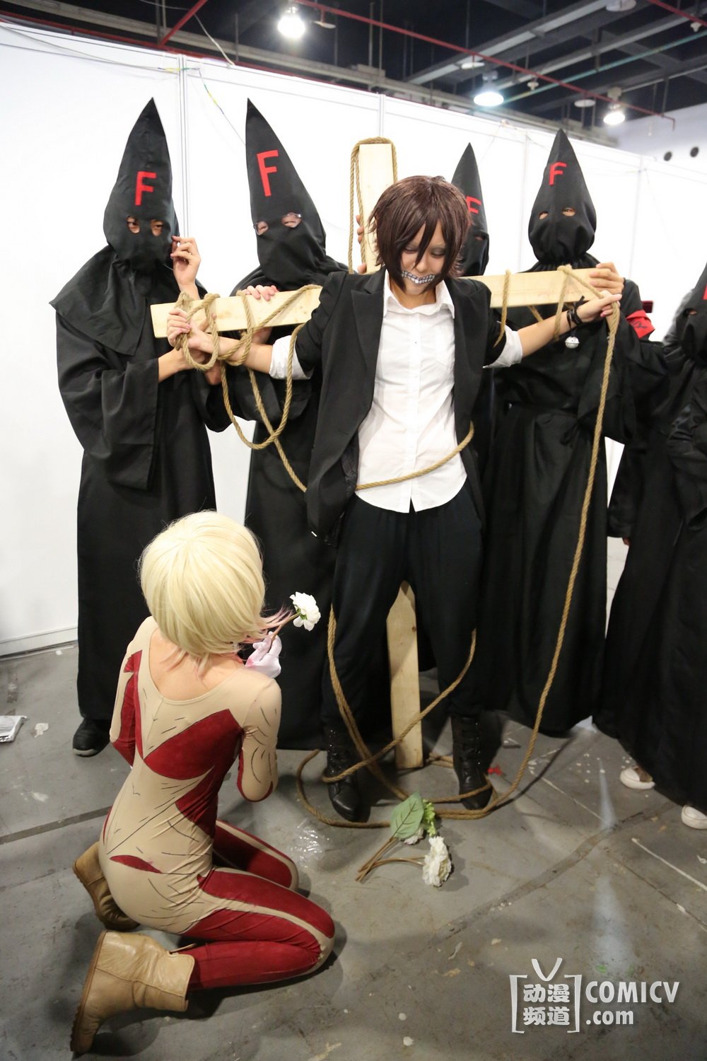 这次F团的口味是越来越重了,不知道是烧情侣烧的不过瘾要烧巨人了呢,还是被女巨人串通好了要来点强硬的。而且十字架上那位好像还憋着一口水不敢笑出声来的样子。