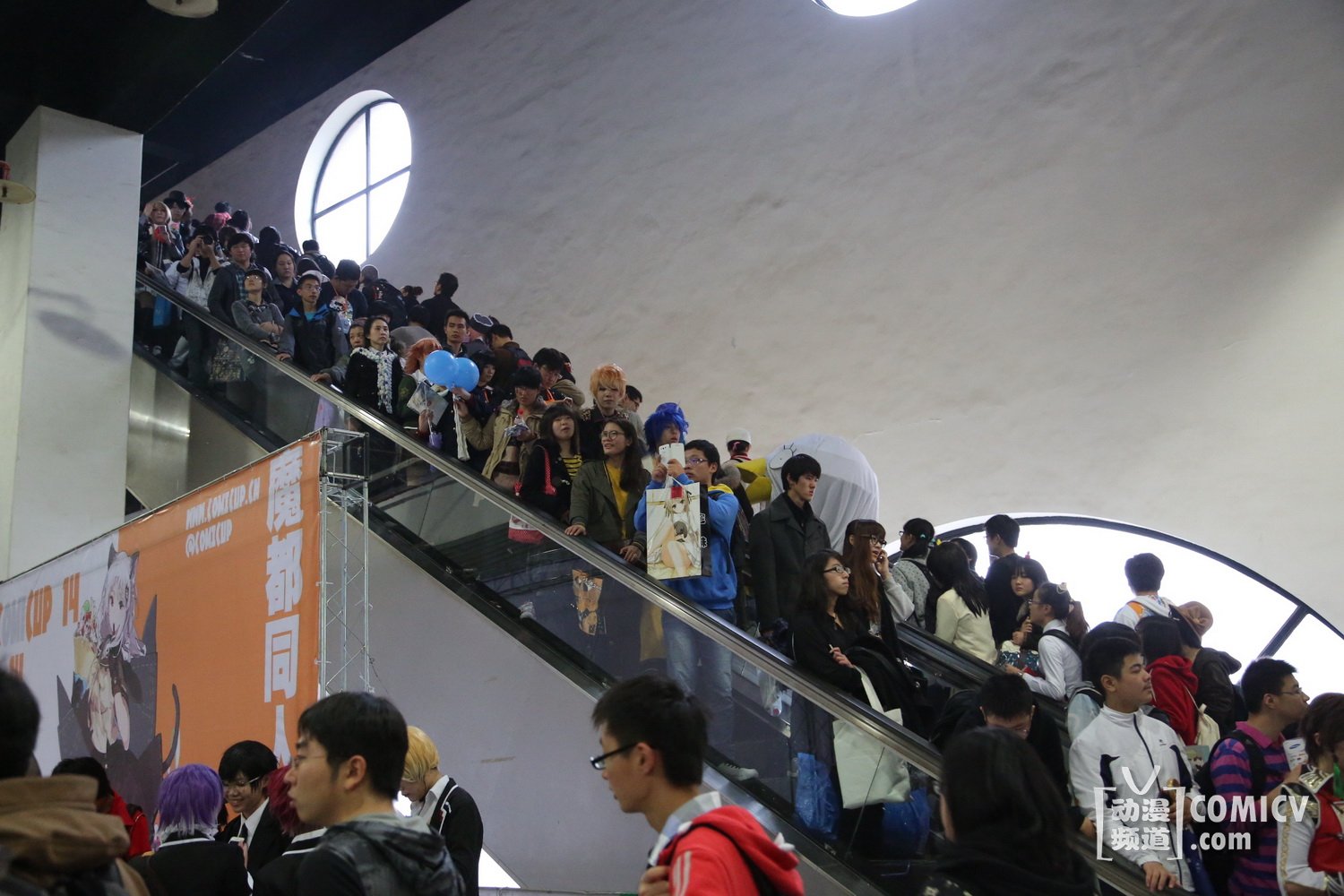 ComiCup13自动扶梯上的人流。(上海动漫情报网络新闻中心记者 摄制)