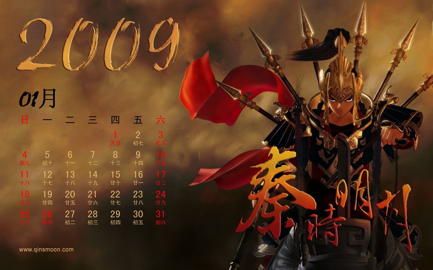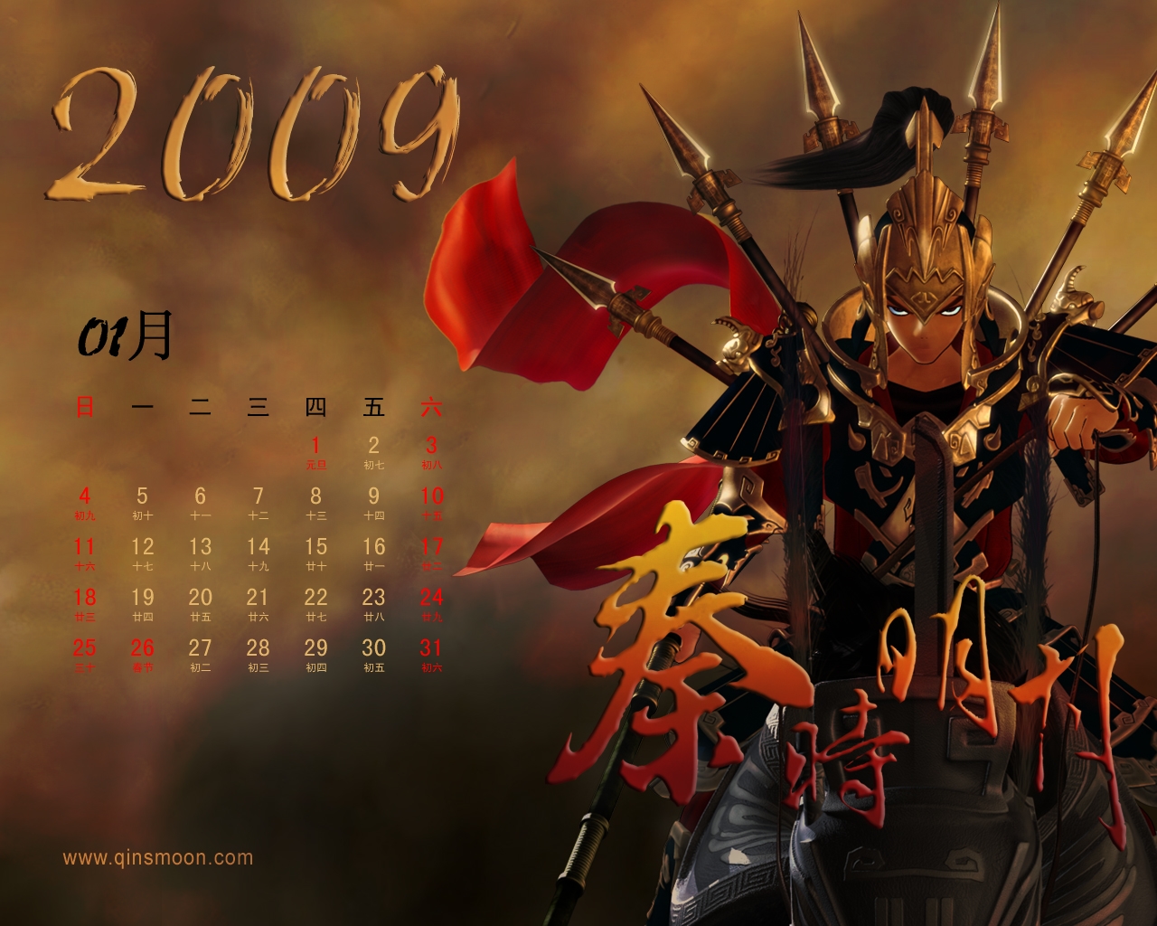 《秦时明月》2009年1月主题月历壁纸火热出炉啦!本月主角——帅气少羽!