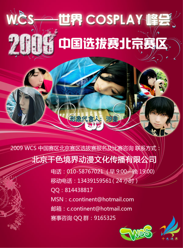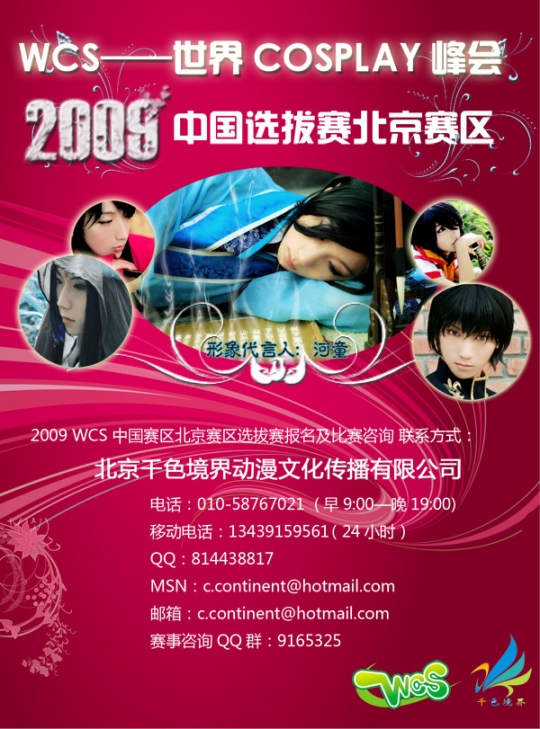 北京千色境界负责人通过C3BBS致各位COSER,本次WCS中国赛区北京分赛区报名将很快截止并开始核对选手身份,请有意愿参赛的COSER尽快报名。以免错失参加世界最高级别cosplay比赛的机会。