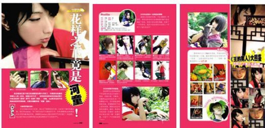 至今已策划、制作并演出数十套Cosplay平面作品并已全部发表于《漫友 漫画100》、《漫友?动画100》、《漫友 COSPLAY100》、《亲小说》、《新视点》、《动漫前线》、《动漫时代》等知名动漫杂志,首本个人写真集将于年内发行。