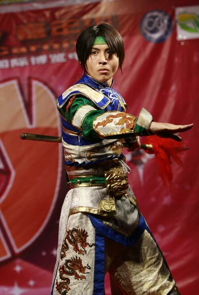 漫半拍:我们的节目节奏是这样,先是锣鼓经的开场,紧接一段任天堂8位机的一款经典格斗游戏《KONG FU》的游戏音乐,把观众带进一种经典和传统的回忆里面。再然后是中国著名武侠小说《笑傲江湖》改变的电视剧音乐,应该是98香港版中的音乐。动作上融入了醉拳,现代街舞,Wave多种动作元素。也表现了我所要的效果——新老文化结合的主题所产生的效果。最后是两个黑衣蒙面人摇身一变成为两个三国时期的猛将,完成一个完美的开场,随着激烈的音乐和音效,穿越时空把观众带到三国无双的战场,给大家视觉和听觉上都有极强的冲击力。这就是我所谓认为的,中国的COSPLAY应有的风格。