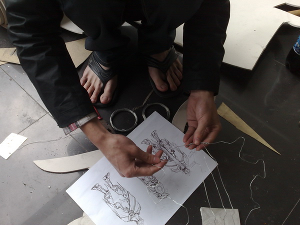社团的骨干里以男丁居多,而且都偏好玩游戏,特别热衷的是暴雪出品的游戏,所以今年痛下决心出了一组名为“暴雪世界”的COS,这组剧由现任“世纪诺亚”负责人张翔带领,筹备了大半年,组织了30多个人,里面涵盖了大部分暴雪游戏中的经典角色,服装道具的难度也是有史以来最高的。虽说准备时间长,但是道具的工艺复杂,临近比赛的前一个月还是得天天加班,而且这组剧里新人也很多,对于道具制作的工艺一窍不通的也大有人在。“瓦斯琪”的鱼尾如何在台上行走,“蜘蛛女王”宽大的蜘蛛腿如何登上舞台,“机枪兵”一大堆装备的板型如何裁剪……等等头痛的问题堆积如山。不过生拉活扯的总算在比赛前一天准备妥当了。听到台下的欢呼声和大家兴奋的评论这是对“世纪诺亚”每个人最佳的回报。
