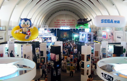 中央大厅:国际展商展区(跳舞机大赛、投篮机大赛、世嘉、南梦宫等),博览会国际展商占全部展商的35%