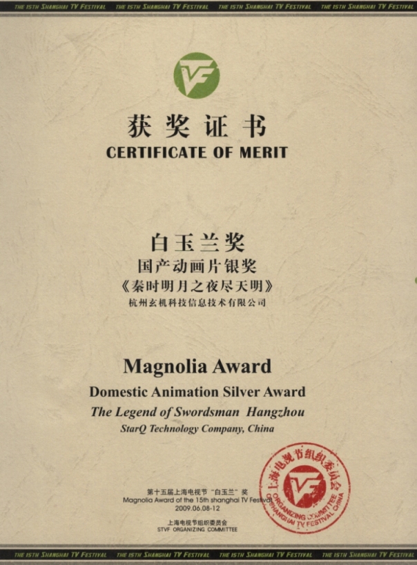 《秦时明月之夜尽天明》喜获第15届上海电视节“白玉兰奖”