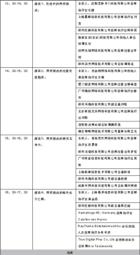 目前,本届中国游戏商务大会(CGBC)各论坛日程安排已基本确定,总日程详见: http://www.chinagbc.com.cn/Meeting_hyrc.aspx