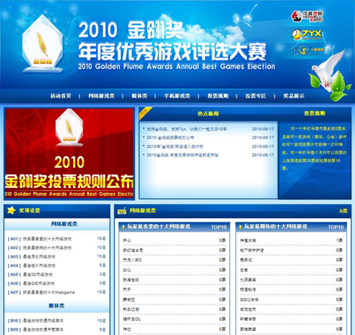 金翎奖活动页面:http://www.chinajoy.net/2010award/