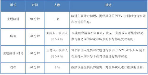 ? 大会针对听众需求和议题特点采取灵活、高效的会议形式包括演讲、座谈、Workshop、教程等