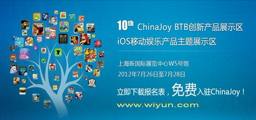 2012年游戏界最大的盛会ChinaJoy即将来临,而ChinaJoy BToB创新产品展示区的iOS开发者报名免费参展活动也已经展开。此次开发者报名面向所有的开发者,只要登录2012ChinaJoy BToB创新产品展示区IOS专区作合办方微云的网站http://www.wiyun.com,提交报名材料,都有机会免费参加ChinaJoy展会,获得现场展示的机会。不少开发者在得知能够有机会免费进驻ChinaJoy iOS产品展示区后都很兴奋。自3月1日报名开始,开发者报名踊跃,纷纷登陆微云和ChinaJoy BTOB的官网下载并填写报名表: