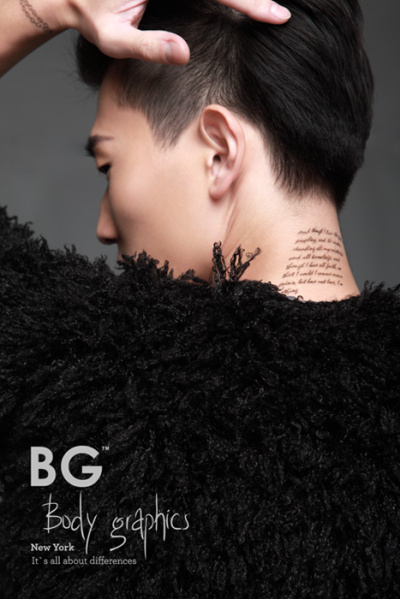 BG,全称是Body graphics,音译过来是“宝蒂格拉菲”,简称“BG纹身贴”。