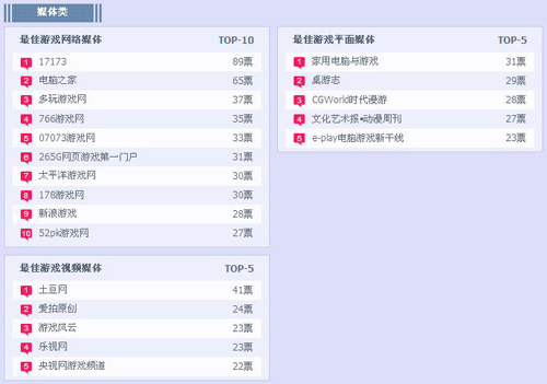 本周榜单中玩家最喜爱的十大网络游戏榜中变化不大,依旧被“九阴真经”独占鳌头,“倩女幽魂”“地下城与勇士”居于其次,后排的游戏想要跻身前三看来要付出更大的努力。最佳原创网络游戏榜中“斩魂”以微弱的差距超越“九阴真经”荣登榜首。玩家最期待榜单中“龙剑”“黑金”几乎齐头并进,而“洛奇英雄传”和“天下3”则分别领先最佳境外网络游戏榜与最佳3D网络游戏榜。网页游戏类中“卧龙吟”居于玩家最喜爱榜单首位,但“大侠传”“神曲”等游戏实力也同样不容小觑随时有赶超的可能。玩家最期待榜单中“萌三国”以颇大的差距拉开次位的“大将军”,不知道后期还能否保持此时的优势。手机游戏类榜单则相对较平稳,由“捕鱼达人”“DNF:地下城与勇士”平分最佳单机榜与最佳网络榜榜首,而暂时位列其次的众款游戏很有可能会后来居上。