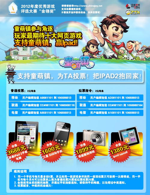 2012金翎奖最期待网页游戏《童萌镇》火热升温,投票赢大奖
