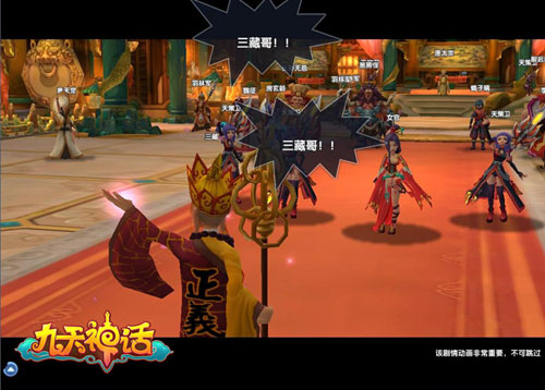 为人所熟悉的唐三藏,正直忠厚,诚恳朴素,但,这简直是弱爆了!赶紧来《九天神话》见识一下三藏哥的风采,游戏中的神话角色一经全力调教,哪咤、二郎神、雷母等熟悉的神话角色一一再现,更幽默更风趣,颠覆你心中神话角色的形象。海量原创动画,让你笑个不停,告别枯燥的文字剧情,3D人物角色萌点十足,可变化的动态表情,让实时感受到角色的喜怒哀乐。游戏中的宠物更是卖萌不断,可爱的造型,伴随在你的身边共战斗!