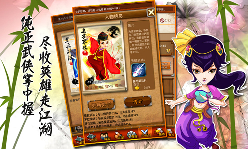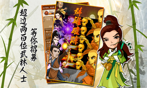 《大掌门》设计的初衷就是为了给喜爱武侠的人一个实现梦想的舞台。我们把中国独有的武侠元素汇聚一堂,用人们耳熟能详的武林人物、熟悉的武功秘籍、经典的武侠桥段,带你走进那梦中熟悉的武林世界。
