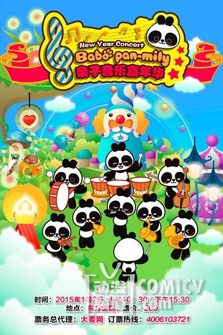 由香港著名的创赢国际创建有限公司授权的国际知名亲子互动品牌Ba-Bo Pan-mily亲子音乐嘉年华新年音乐会将于2015年1月2日在东方剧院精彩呈现。