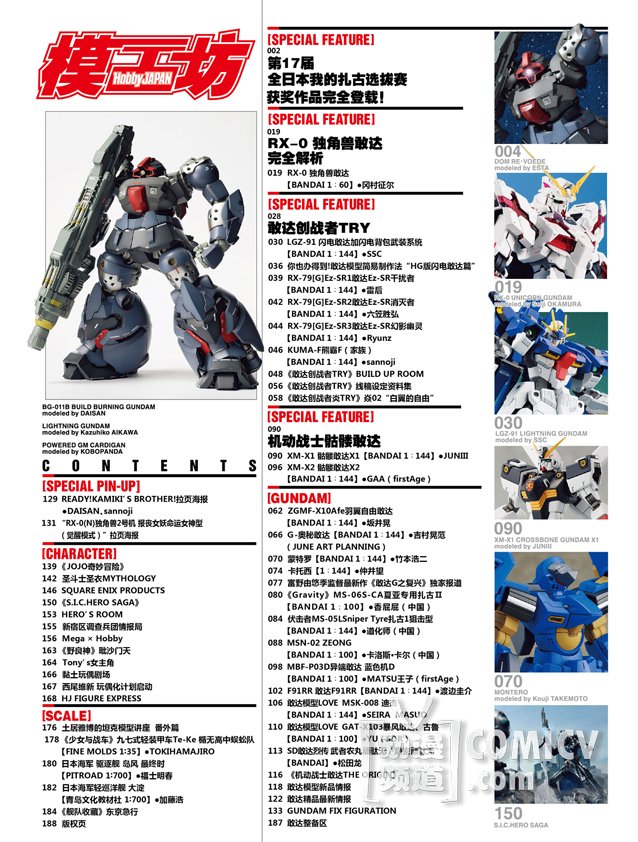 本期又迎来了新一年的年度模型盛典,HobbyJAPAN我的扎古选拔赛成绩大公开,多位中国玩家入围决赛圈。同时万代时隔多年再次发布PG级模型产品独角兽敢达也在本期与大家见面,没能亲临发布会现场的朋友们也来一饱眼福吧!