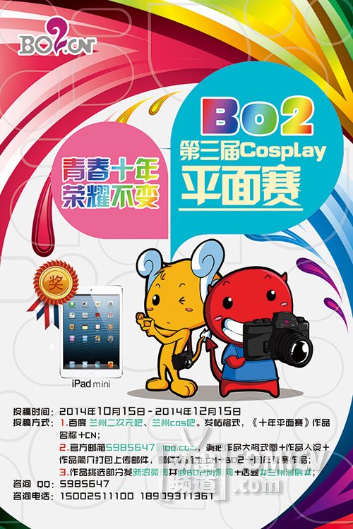 又到了一年一度为BO2动漫庆祝生日的季节,2015年的周年庆将特别的激动人心,因为BO2动漫十岁啦!2015年2月22日-23日(大年初四初五)我们依旧相约兰州伊和园礼宴中心!