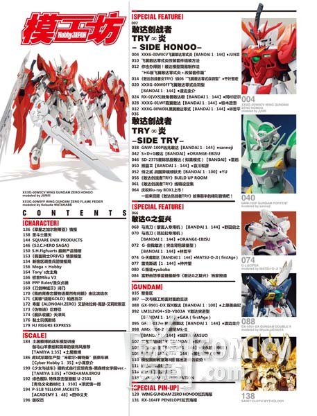 随着敢达创战者TRY和G之复兴的双双完结,HJ独家企划的敢达创战者TRY炎也随之进入高潮,更加华丽的机体纷纷登场,当然,还有各种奇怪的机体,你们懂的!本期敢达内容依然超过一百三十页海量放送!