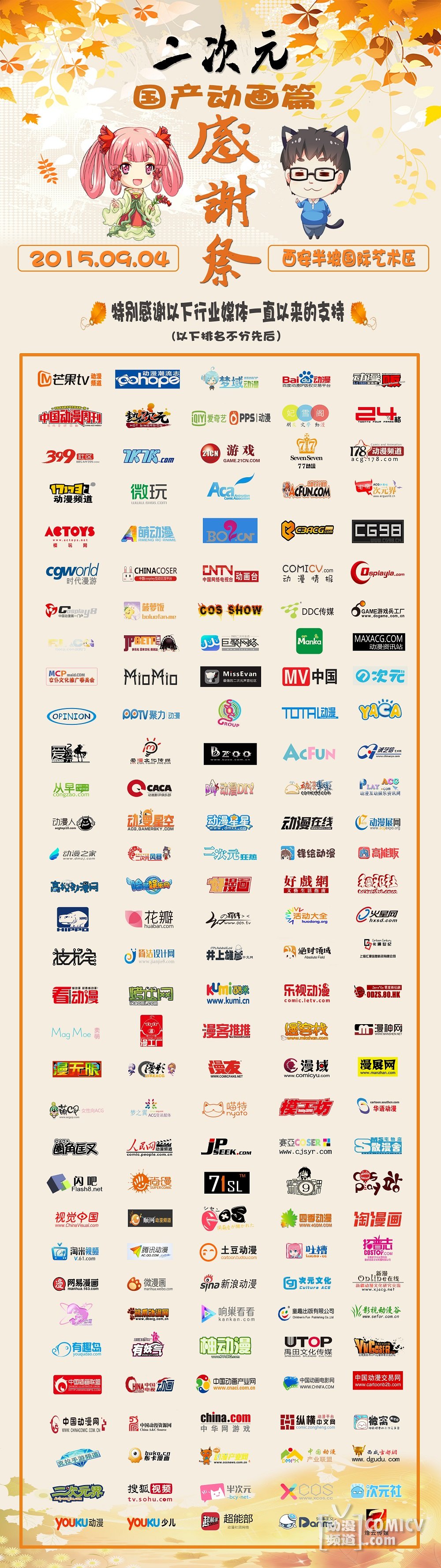 此次感谢祭我们将全天不间断展播迄今为止得到的所有授权作品,除已展映过的《魁拔》、《秦时明月》、《纳米核心》、《画江湖之不良人》、《那年那兔那些事儿》等作品外,还有最新追加的授权作品《英雄别闹》、《混沌白书》、《雏蜂》等首次与大家见面。