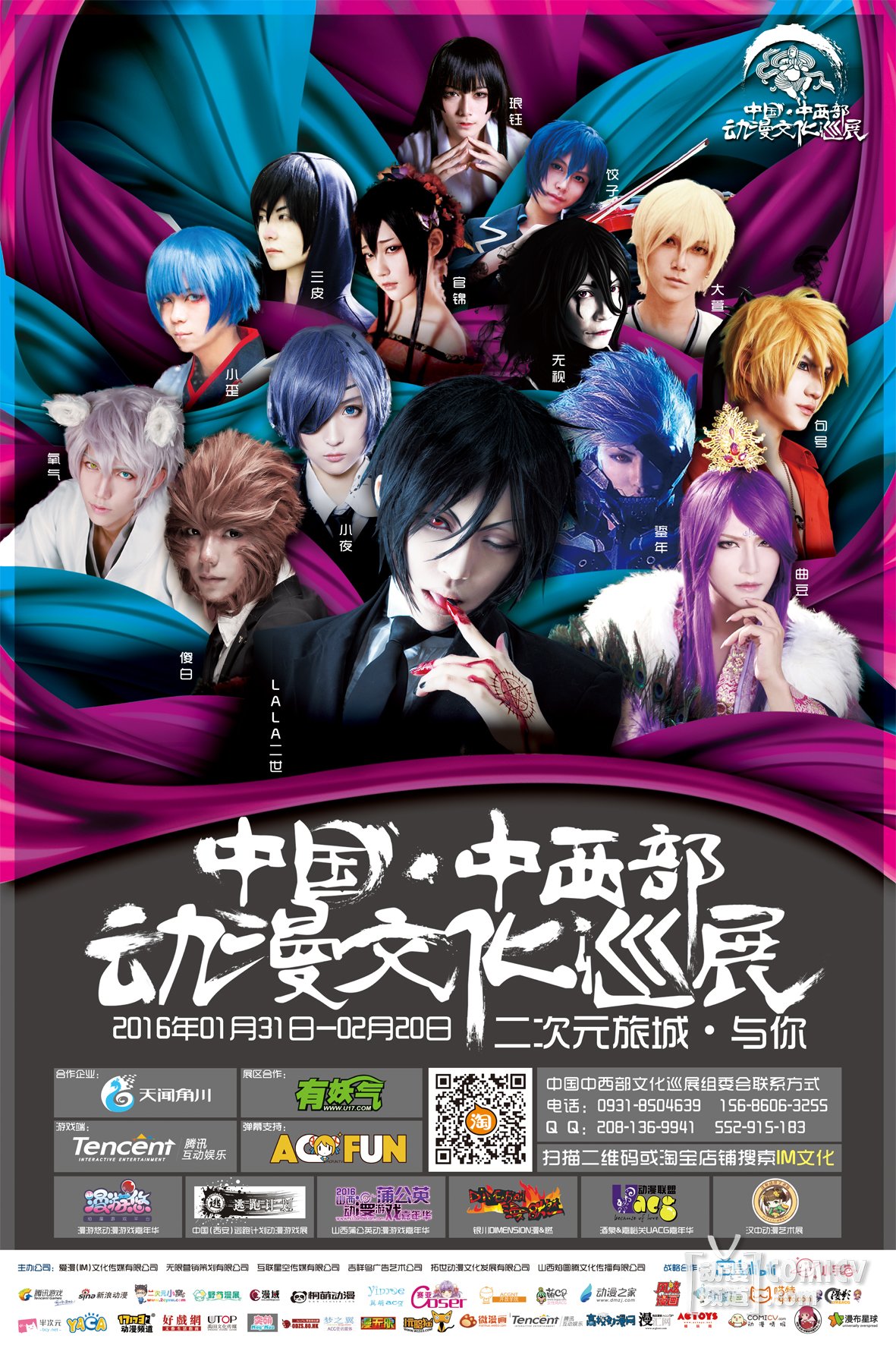 本次巡展计划时间从2016年1月31日至2月20日期间,从第一站兰州开始呈辐射状扩散至西北五省九市开展巡展活动。巡展举办城市有甘肃省:兰州-2016年1.31-2.1(兰州市城关区西关十字伊和园礼宴中心五楼)、天水2016年2.17(天水南站体育场室内场)、酒泉&嘉峪关2016年2.3(酒泉生态文化博览园二楼演艺大厅);宁夏回族自治区:银川2016年2.14(银川市银川国际会展中心);青海省:西宁2016年2.20(青海省西宁市城东区八一路41号蕴园);陕西省:西安2016年2.14-2.15(地点待定)、汉中2016年2.??(陕西省汉中市滨江路茶城广场主楼六层展厅);还有新加入的来自山西的主办城市阳城2016年1.31-2.1(地点待定)。九场展会,一场旅城,最好的动漫文化,最好的城市奉献给你。