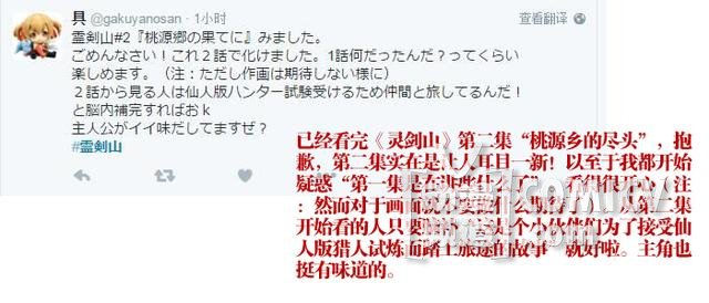 其实这位叫“具”的岛国阿宅意见很具代表性,那就是由于文化差异啦观影习惯啦画风体验啦等因素,大多数日本观众在看《灵剑山》动画第一集时会有些一头雾水,简而言之就是还没习惯这种带有浓厚中式吐槽冷幽默和网络恶搞风格作品的展开模式,不过“一旦习惯了这种设定以后还蛮带感”乃是全球通行的定律,当动画的第二集情节渐入佳境之后,阿宅们也渐渐习惯了起来,对这“修仙题材Hunter X Hunter”的独特魅力有了些体悟,纷纷开始进入期待模式。更重要的是,大家都觉得主角简直帅·爆·啦,开挂一般的高智商+厚脸皮+毒舌简直让人欲罢不能啊有木有!