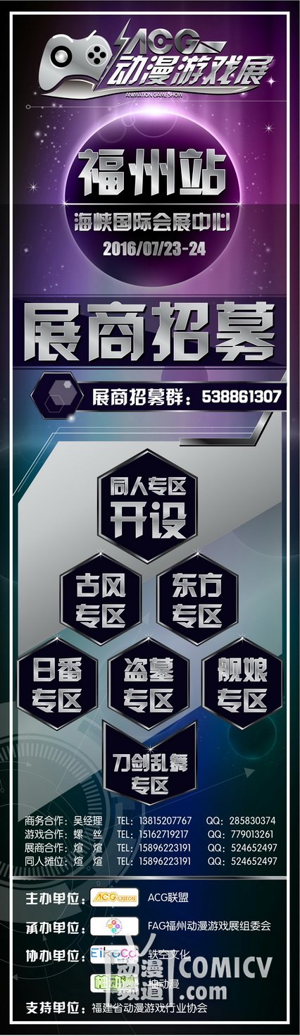 现面向全国地区诚邀展商参展,展会预计开设有同人专区、古风专区、东方专区、日番专区、盗墓专区、舰娘专区、刀剑乱舞专区等数个专区,欲做详细了解可添加展商招募群:538861307或通过以下方式专人对接: