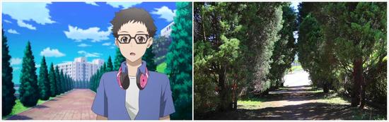 每个学校都有一个看似不为人知其实人尽皆知的恋爱圣地,港科大也不例外,这条柏树小道的真实面目,就是科大学生口口相传的“偷情小径”,它其实要比动画中要窄很多,高大的柏树,昏暗的效果,你懂的……