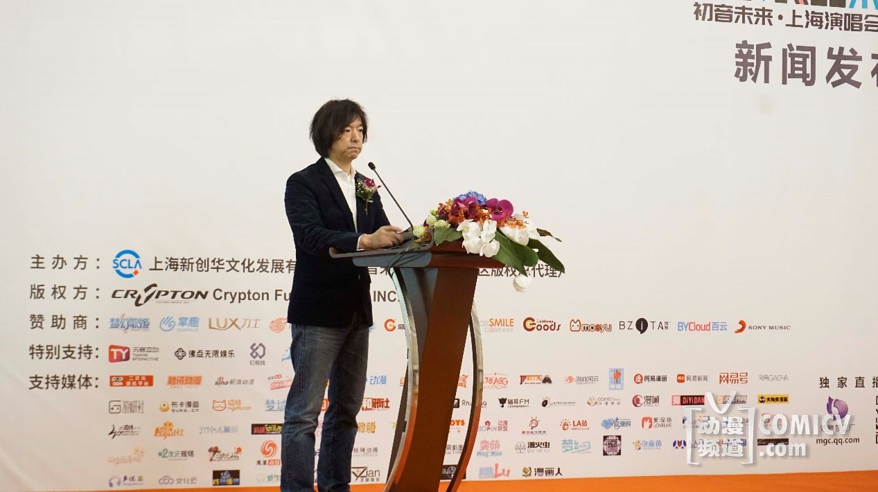 日本版权商Crypton Future Media社长伊藤博之先生进行了发言并表示: 初音未来的演唱会在中国已经连续举办了3年,值此初音未来10周年之际,希望这次精心准备未来有你·初音未来2017上海演唱会能让中国的粉丝享受到无与伦比的感官体验。