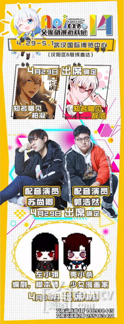 脚本师左小翎和少女漫画家壳小杀4月30日出席确定!二位老师的《南烟斋笔录》已经被改编为电视剧,人气持续上涨中!届时在艾妮现场会有两位老师的签售会哦~