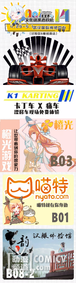 漫展三天将有K1 KARTING车场带来的痛车卡丁车展览,漂移车现场免费体验,现场还有卡丁车场免费游玩等惊喜优惠掉落哦~ 欢迎广大同好前来参观!