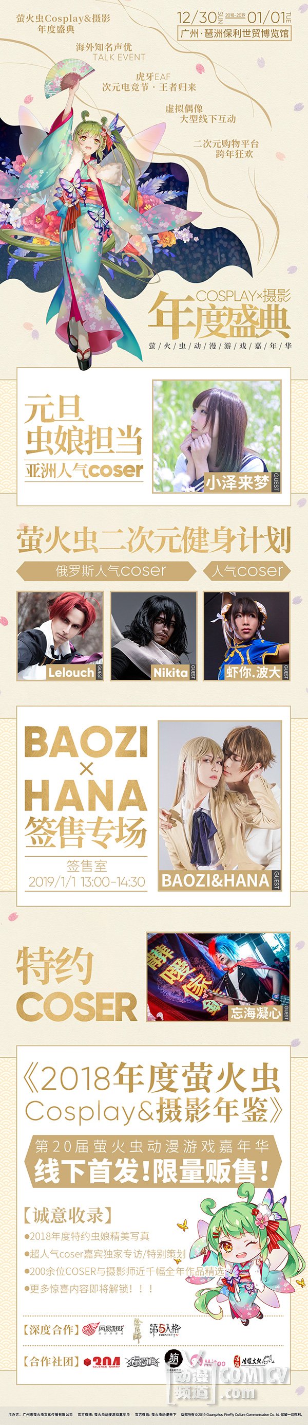 2019萤火虫Cosplay&摄影年度盛典紧锣密鼓筹备中!特邀亚洲人气coser小泽来梦担当虫娘,俄罗斯coser Lelouch、Nikita登台互动,国内人气coser BAOZI&HANA现场签售,脑洞coser 望海凝心漫展三天搞事情!