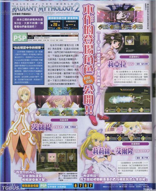 PSPÓÎÏ·¡¶ÊÀ½ç´«Ëµ£º¹âÃ÷Éñ»°2¡·ÊÇÒ»¿î»ã¼¯ÁË´«ËµÏµÁÐÖî¶à½ÇÉ«µÄÓÎÏ·¡£±¾×÷ÖлáÓÐ50ÃûÀ´×Ô´«ËµÏµÁи÷¸ö×÷Æ·ÖеĽÇÉ«¡£µ½ÏÖÔÚΪֹ¹«¿ªµÄнÇÉ«ÒѾ­ÓÐ28ÃûÁË£¬¼ÓÉÏǰ×÷Ôø³ö³¡¹ýµÄ19Ãû£¬ÏÖÔÚÓÎÏ·Öеĵdz¡ÈËÎïÒѾ­´ïµ½ÁË47Ãû£¬Ò²¾ÍÊÇ˵»¹Ê£ÏÂ3Ãû½ÇɫûÓй«²¼¡£Ê£ÏµÄ3¸öÈË»áÊÇË­ÄØ£¿´ó¼Ò²»·Á²ÂÒ»²Â¡£